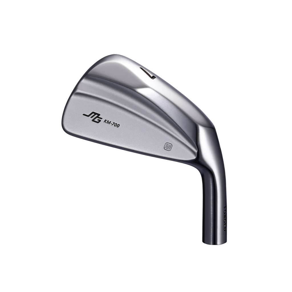 KM700は軟鉄S20Cの一体鍛造ヘッドで、精密鍛造W.D.D.Accurate Forgedとされる製法、Wニッケルクロムのディープサテン仕上げを採用しています。単一素材で重心設計を追い込み、打点裏に肉厚を持たせた段状のバックフェースと、トゥ側を大胆に削り込むトゥ・カット・グラインドが大きな特徴です。