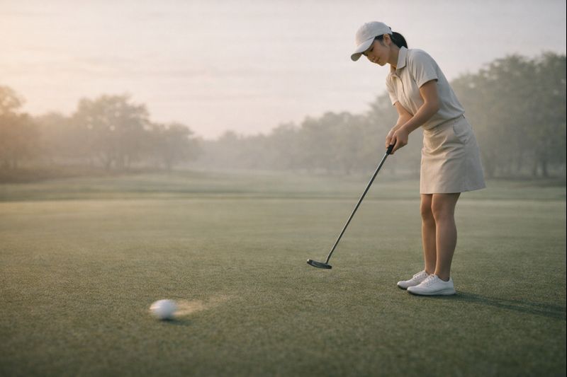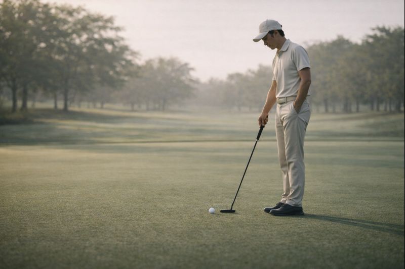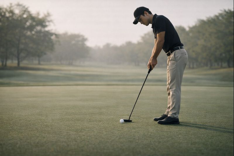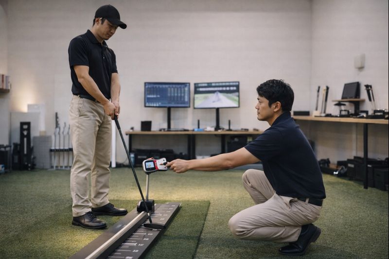 セルフチェックはシンプルでいいです。フラットな場所で構えて、ヘッドのトゥ・ヒールがどちらか浮いていないかを目視する。次に、フェースの見え方が「開いてる」「被ってる」どちらに感じるかをメモする。最後に、1mのパットを10球打って、ミスが右(プッシュ系)か左(引っかけ系)か傾向を取る。これだけでも、ライ角とFPの方向性が見えてきます。