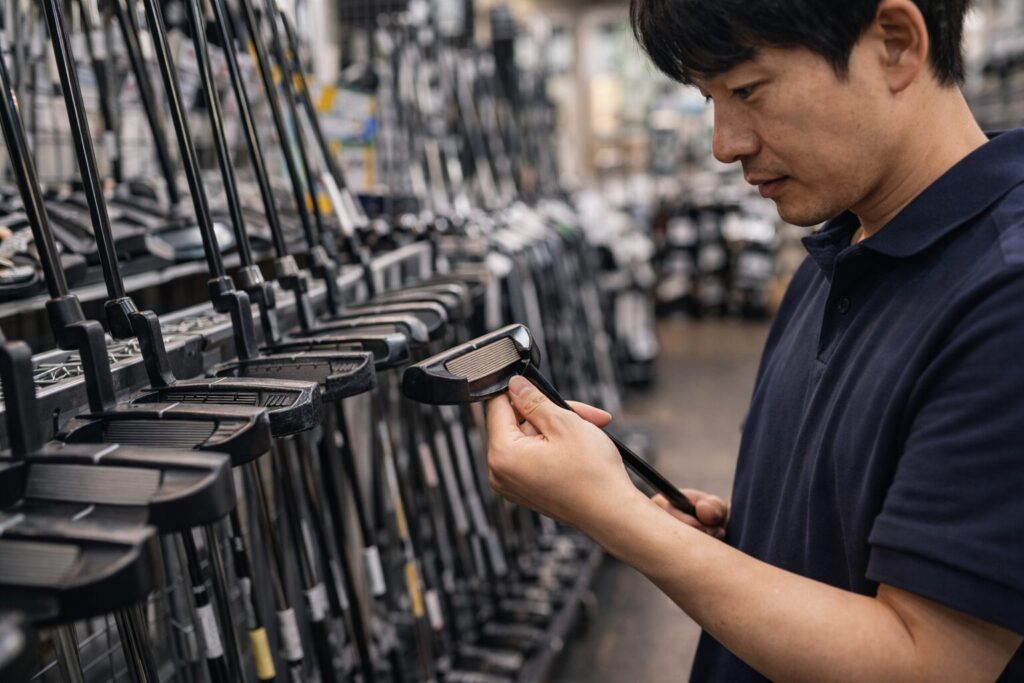 また、フェース周りの傷や打音の変化、グリップの消耗、純正状態かどうかも見たいところです。パターは見た目のきれいさ以上に、構えたときの安心感が大きいクラブなので、写真だけで決めすぎないほうが安全です。